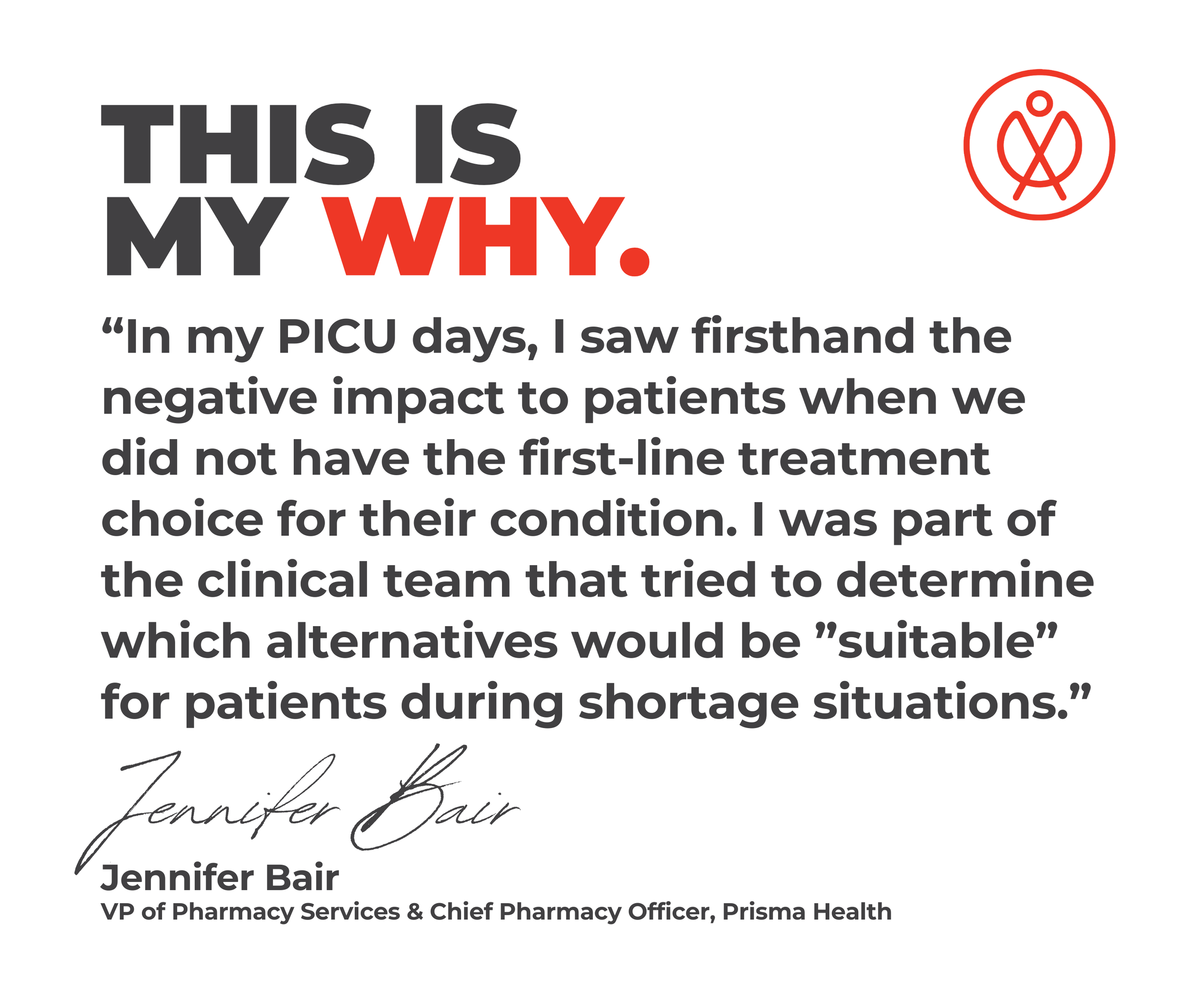 ““My Why began at home. My daughter’s best friend faced three drug shortages during leukemia treatment, and her mother—one of my closest friends—was forced to take on the system. That experience became a professional commitment to use my skills to help end drug shortages for all patients.””