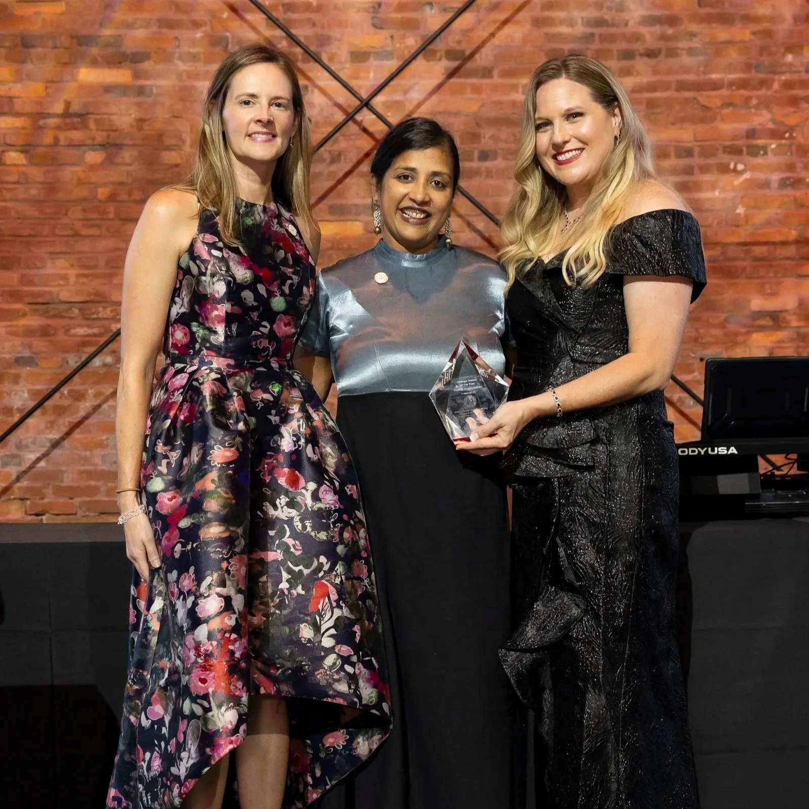 Lindsey (Hein) Thomas, 2024 Change Maker of the Year; Vimala Raghavendran, 2025 Change Maker of the Year; Laura Bray, Founder & Chief Change Maker, Angels for Change